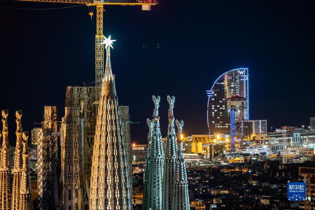 西班牙巴塞罗那地标建筑圣家族大教堂(又称圣家堂)上的塔顶之星于11月29日安装,12月8日点亮,标志着教堂建设“封顶”。圣家堂由西班牙著名建筑师高迪设计,从1882年开始修建至今,预计将于2030年竣工。