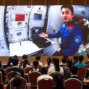当日,“天宫课堂”第一课开课,神舟十三号乘组航天员翟志刚、王亚平、叶光富在空间站进行太空授课。