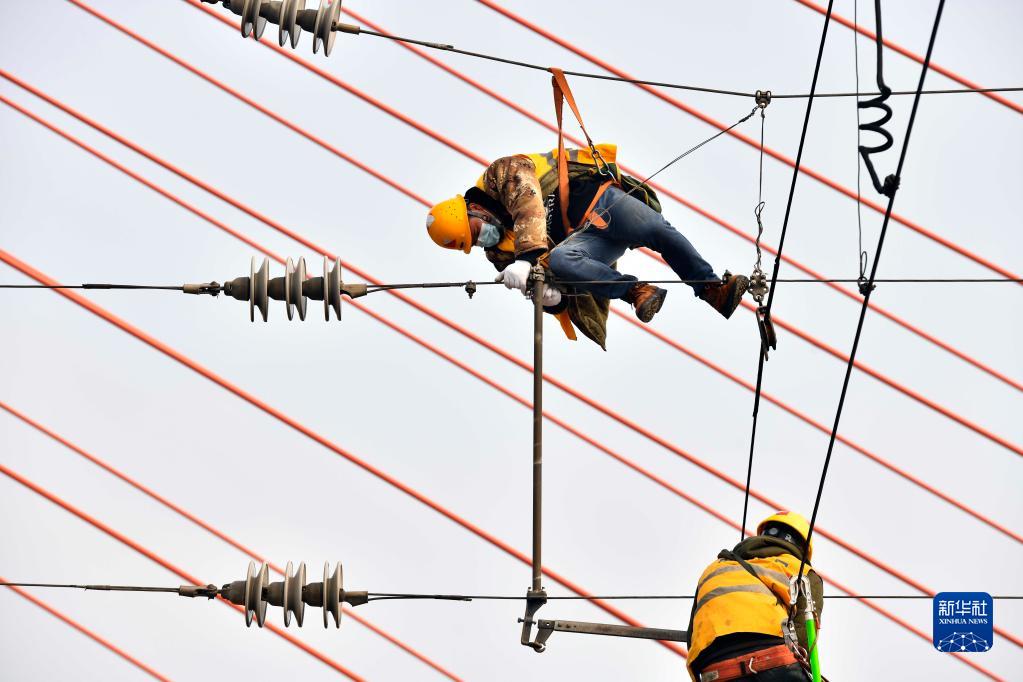 12月9日,在济南火车站附近,中铁十局的工作人员进行郑(州)济(南)高铁引入济南枢纽工程京沪四线拨移作业。新华社记者 郭绪雷 摄
