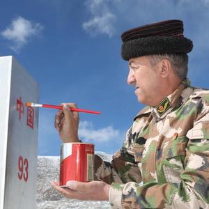 新疆维吾尔自治区塔什库尔干塔吉克自治县义务护边员龙吉克·卡德尔(右)在边境地区向牧民了解情况(10月13日摄)。新华社发(姬文志 摄)