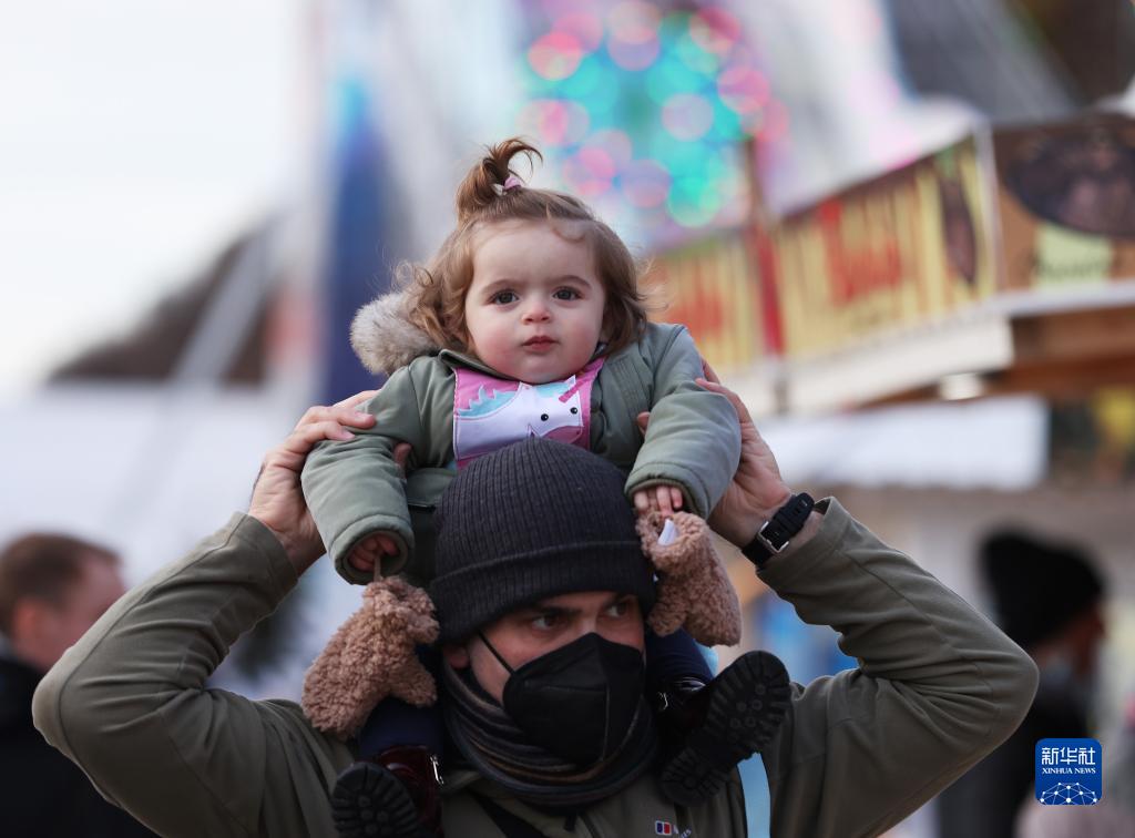 12月9日,一对父女在法国巴黎杜伊勒里花园的圣诞市场参观。