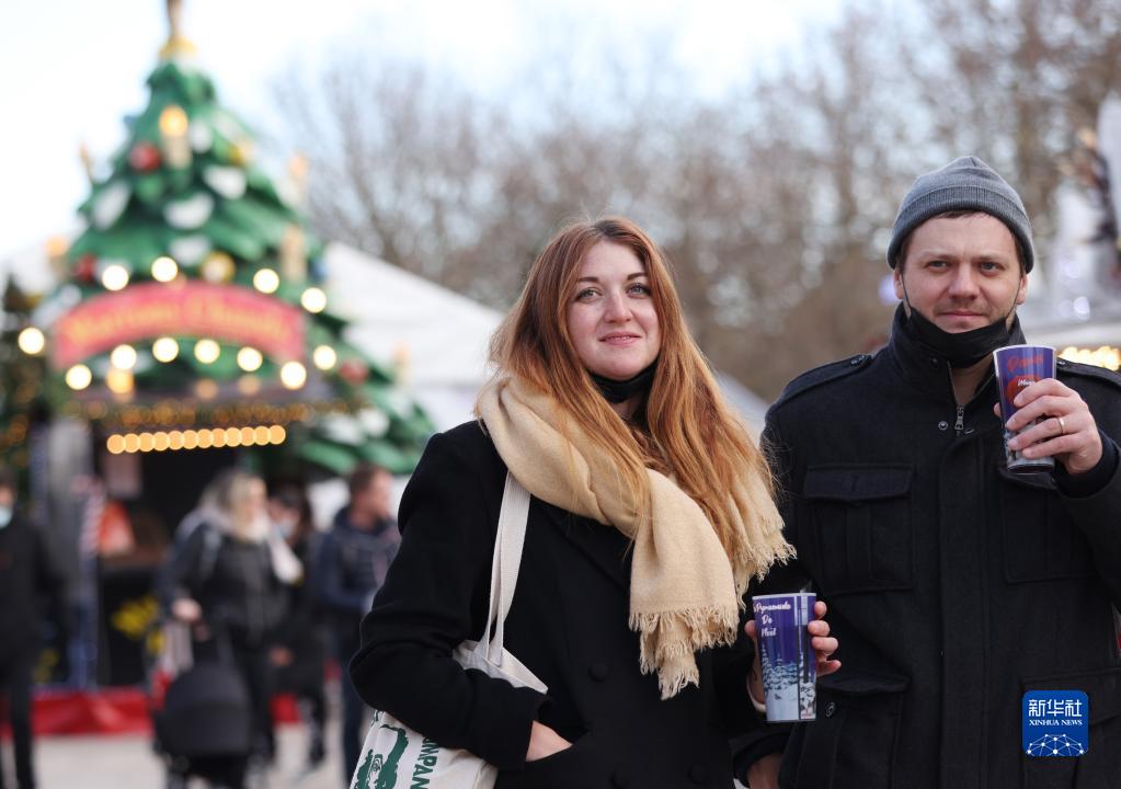 12月9日,人们在法国巴黎杜伊勒里花园的圣诞市场品尝热红酒。