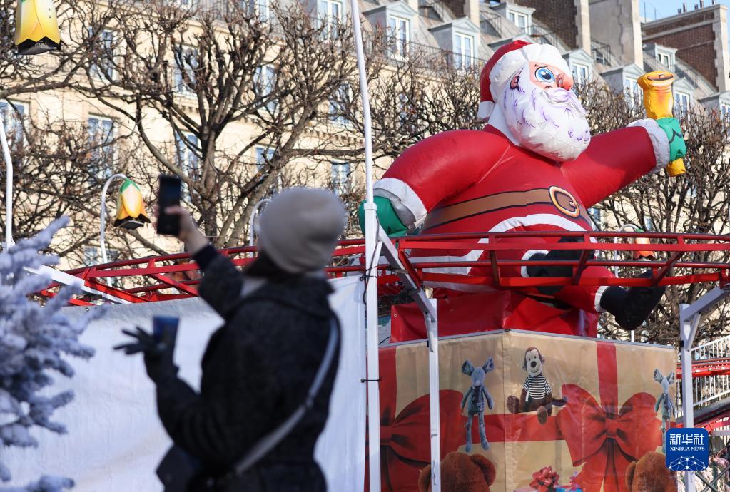 12月9日,一名女子在法国巴黎杜伊勒里花园的圣诞市场参观。