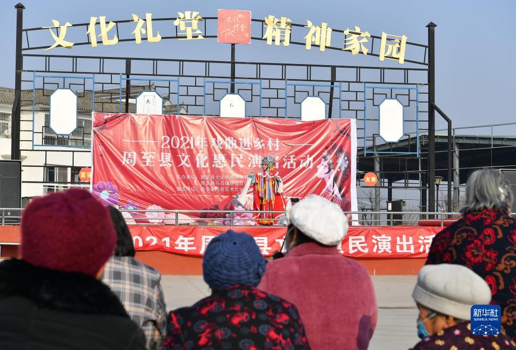 12月9日,西安市周至县马召镇安富园社区居民在社区观看演出。新华社记者 张博文 摄