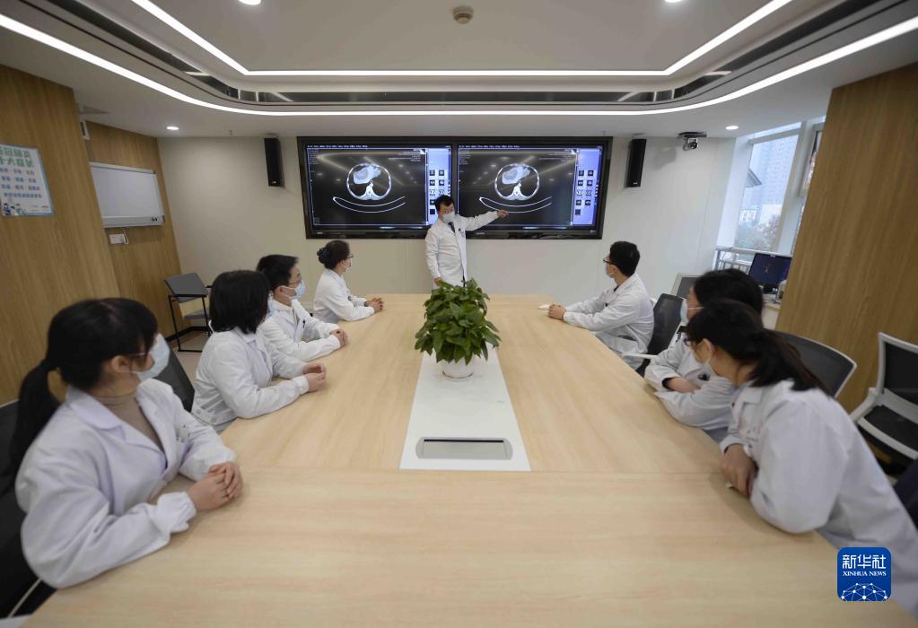 12月3日,在四川大学华西医院,王文涛(右四)在与医务人员讨论病人治疗方案。新华社记者 刘坤 摄
