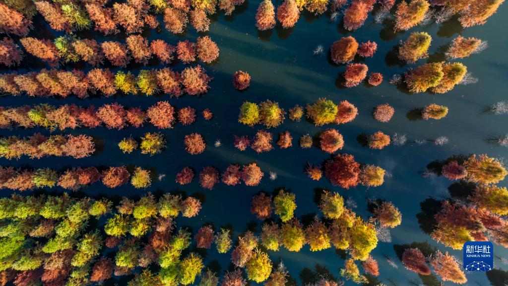 冬日,云南省昆明市盘龙区滇源街道甸尾村水杉湿地的水杉林色彩艳丽,景色如画。这片水杉湿地位于滇池上游、昆明松华坝水源保护区内。