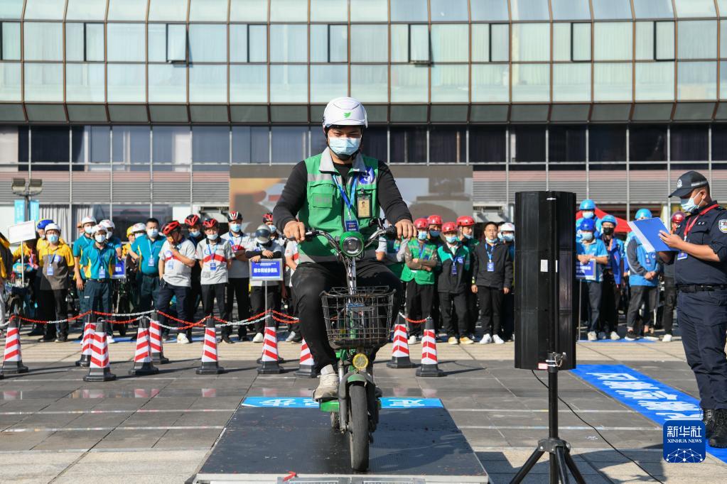 当日,深圳市罗湖区快递外卖行业人员劳动安全技能竞赛在深圳大剧院广场举行。竞赛分为安全知识理论和交通安全骑行技术2个项目,来自11家快递外卖企业的110名员工参加竞赛。