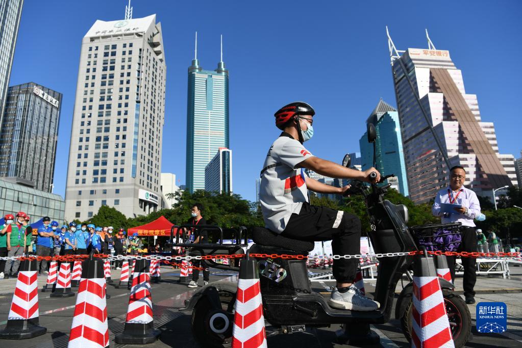 当日,深圳市罗湖区快递外卖行业人员劳动安全技能竞赛在深圳大剧院广场举行。竞赛分为安全知识理论和交通安全骑行技术2个项目,来自11家快递外卖企业的110名员工参加竞赛。