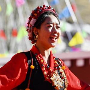 12月10日,在西藏康马县2021年产业竞赛暨冬季物资交流会开幕式上,当地演员在表演节目。