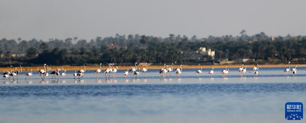 进入冬季,大批火烈鸟飞抵埃及法尤姆省内的加龙湖觅食越冬。