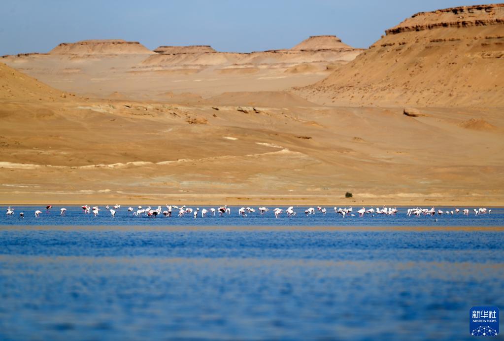 进入冬季,大批火烈鸟飞抵埃及法尤姆省内的加龙湖觅食越冬。