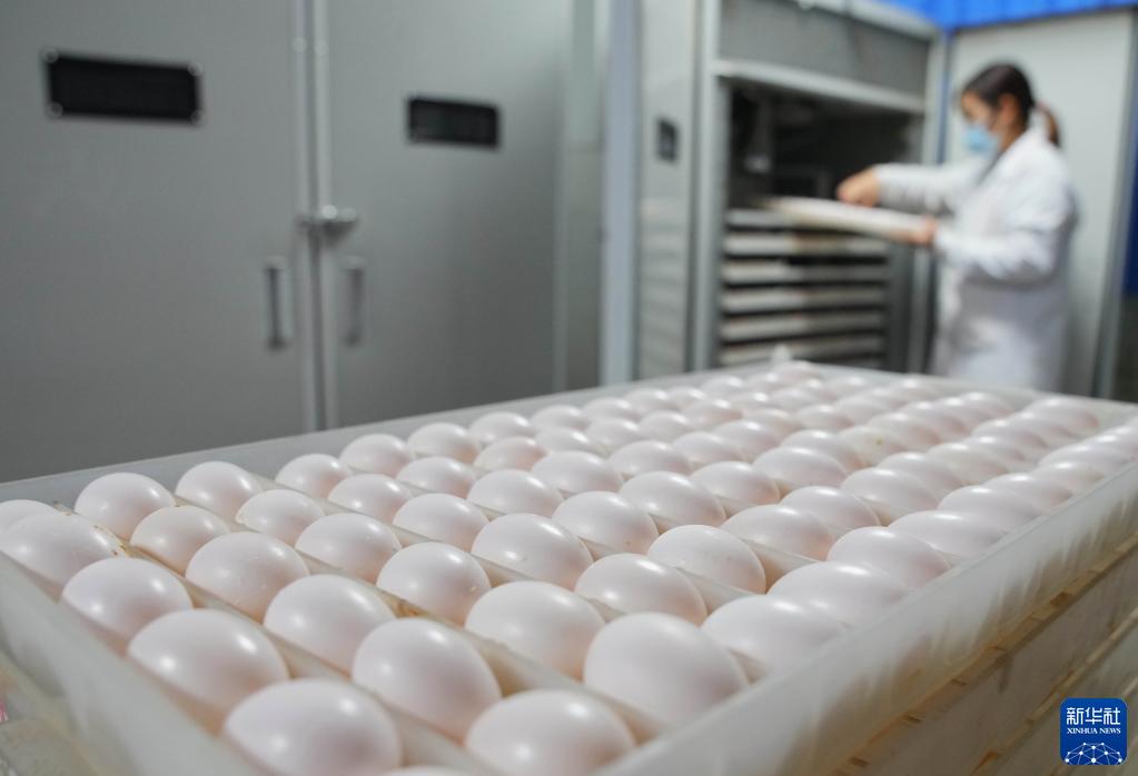 12月10日,唐山市丰南区王兰庄镇一家肉鸽养殖场的工人在孵化车间工作。