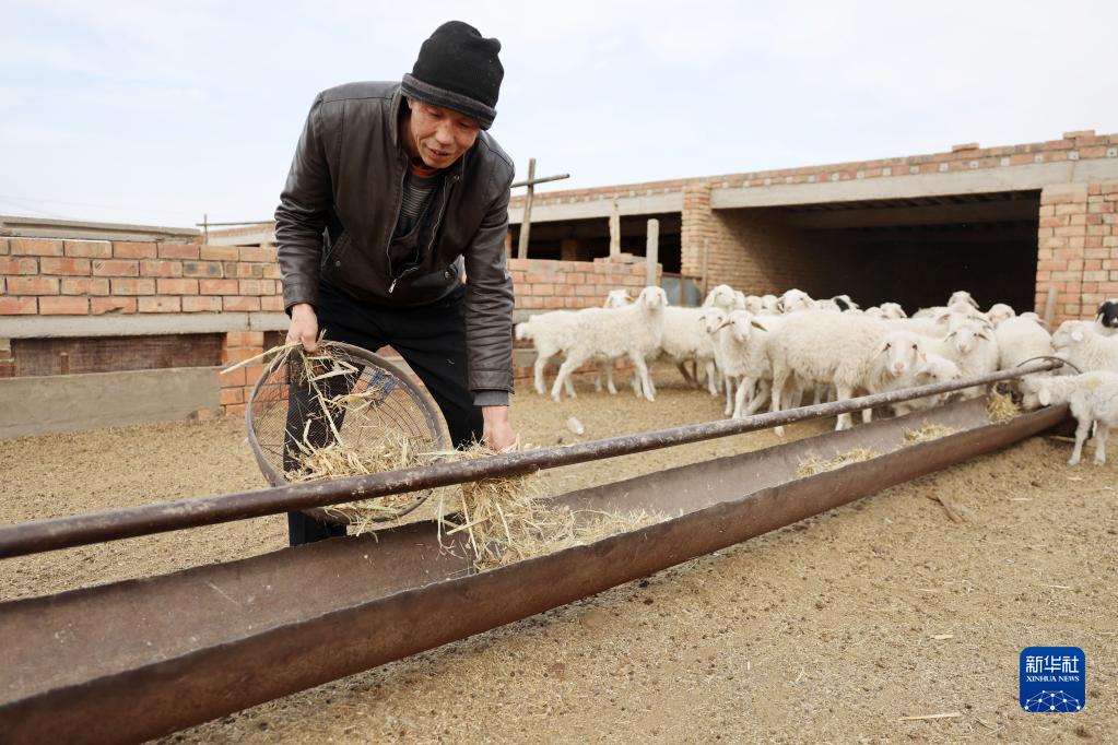 12月10日,盐池县曾记畔村村民张国定在喂羊。张国定通过小额信贷发展滩羊养殖,养殖规模从最初的几十只发展到目前的近二百只。