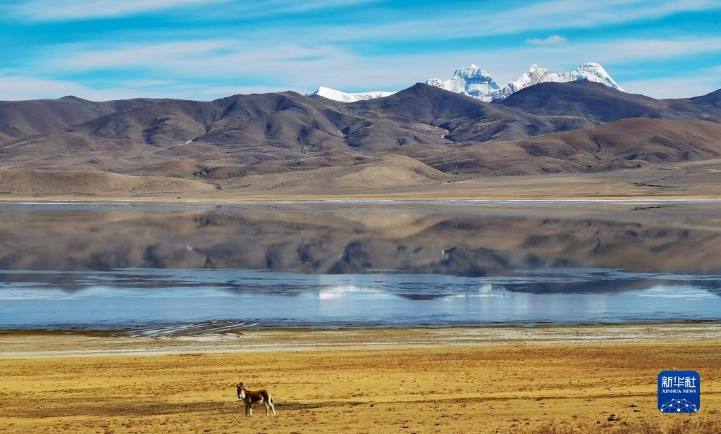 冬日的哲古湖,湖光、雪山、野生动物相映成趣(12月4日摄,手机照片)。