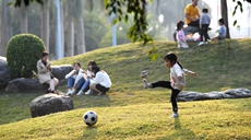 12月11日,在广西南宁市南湖边,市民在休闲娱乐。