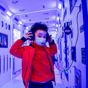 当日,四川成都武侯区潮音社区的社区太空探索中心免费开放,受到社区家长和孩子们的欢迎。在社区太空探索中心,市民可以走入中国空间站核心舱1:1模型,模拟感受宇航员的工作场景,也可以通过参观火箭、飞船模型陈列展和参加科普讲座,了解我国载人航天知识和航空发展历程。