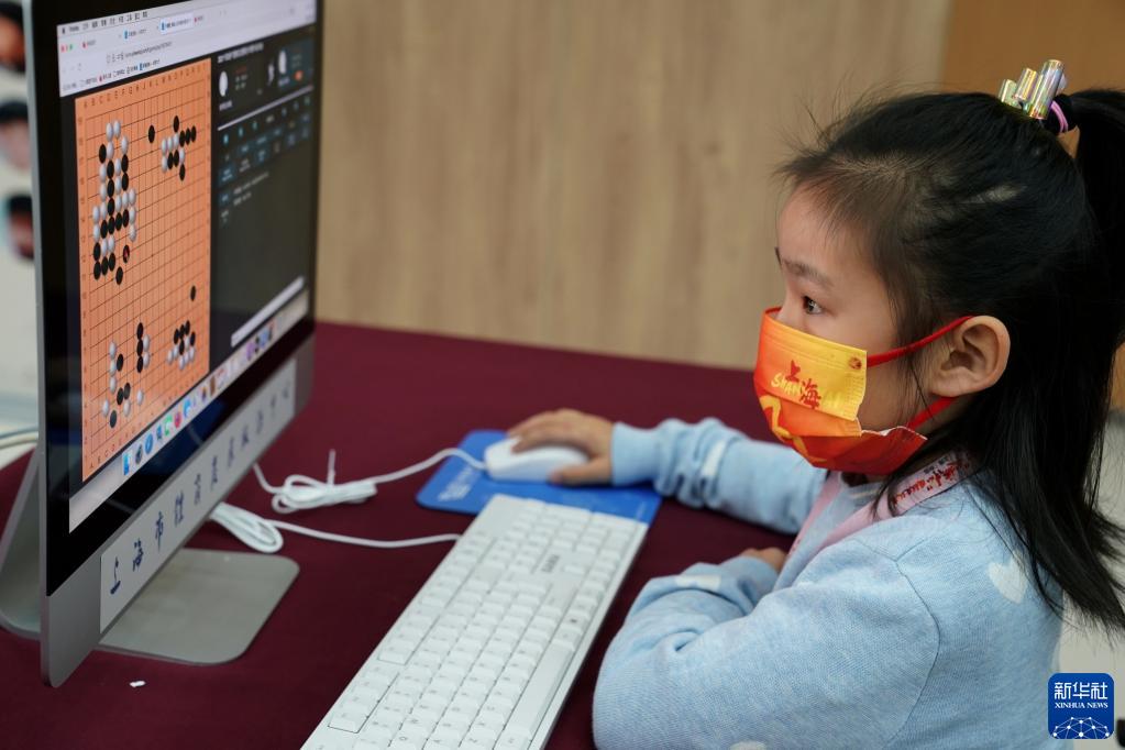 12月12日,小棋手在上海参加2021“双城杯”围棋交流赛线上对弈。
