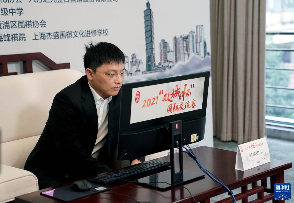 12月12日,在“双城杯”围棋交流赛上,上海知名棋手胡耀宇八段在上海与台北“红面棋王”周俊勋九段进行在线对弈。