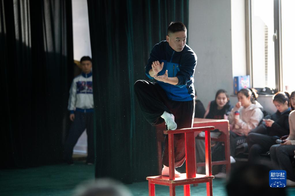 12月13日,饰演窜天猴的演员曹阳阳在排演中。