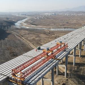 12月13日,工人在京秦高速遵秦段秦皇岛市抚宁区董各庄高架桥建设工地施工(无人机照片)。