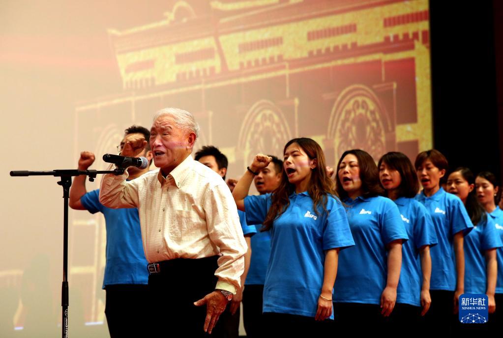 2018年6月6日,在上海影城一号大厅,电影表演艺术家、年逾八旬的牛犇向中国共产党党旗庄严宣誓,加入中国共产党。新华社记者 任珑 摄