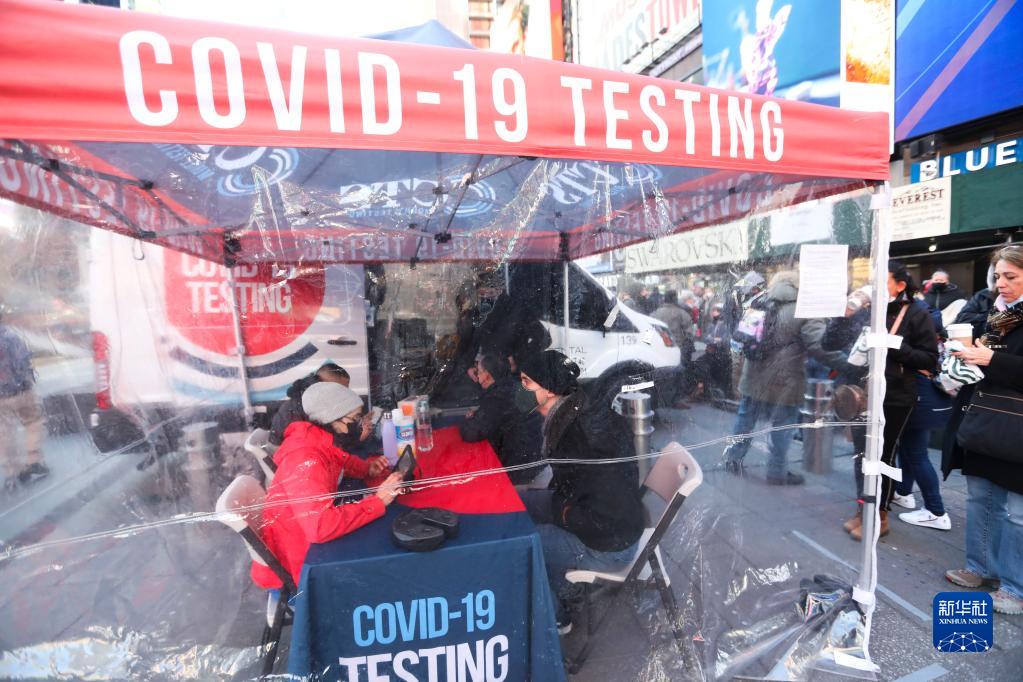 12月13日,人们在美国纽约时报广场的一个新冠检测点登记检测。