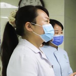 西安大兴医院质控科主任刘维(左一)在肝胆外科检查科室医生临床路径完成情况(11月26日摄)。