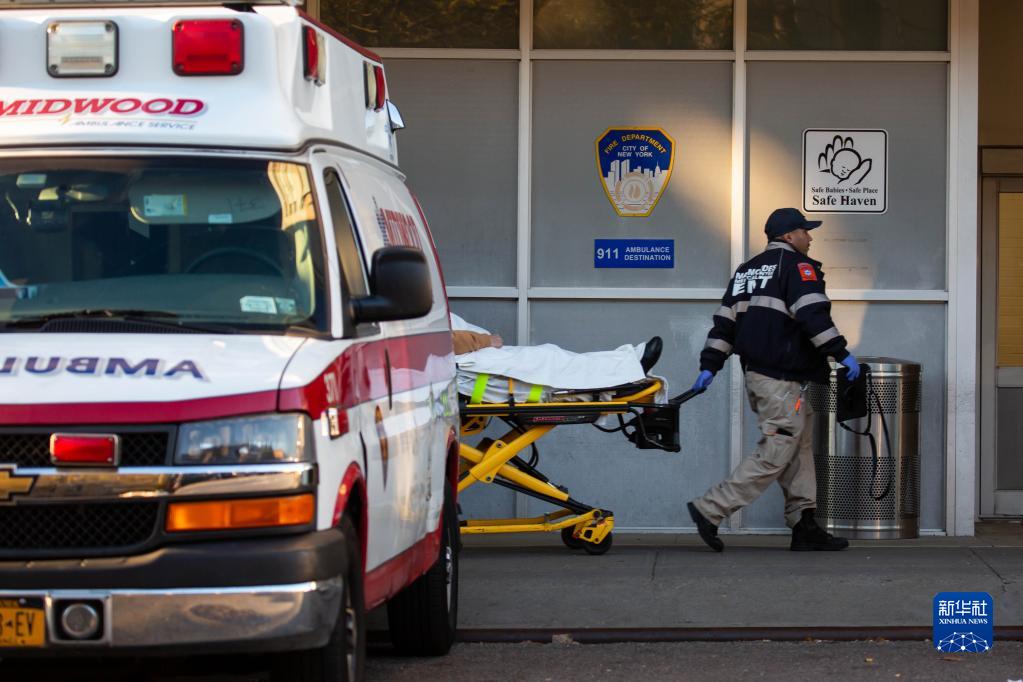 12月14日,在美国纽约,工作人员将一名病人送入医院。