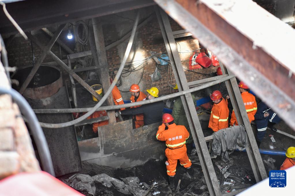 这是12月16日在山西省孝义市西辛庄镇杜西沟村拍摄的救援现场。