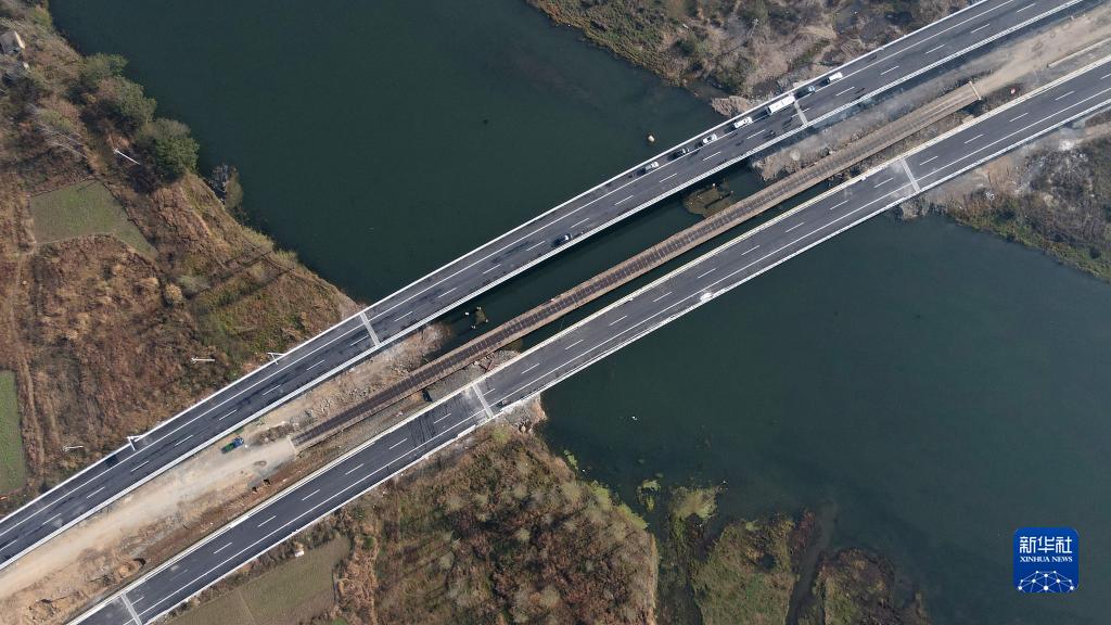 这是11月27日拍摄的芜黄高速泾县段青弋江特大桥(无人机照片)。