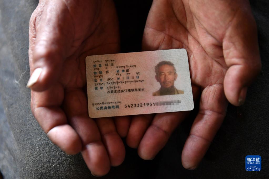 旺加老人的身份证(5月12日摄)。新华社记者 孙瑞博 摄