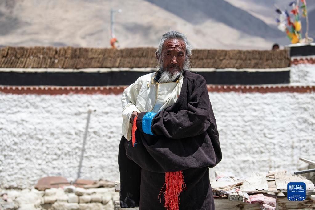 旺加老人在自家院子里(5月12日摄)。新华社记者 孙瑞博 摄