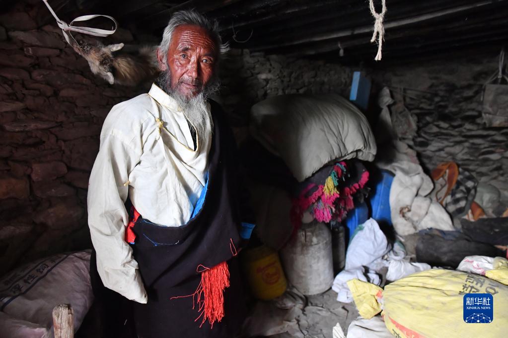 旺加老人站在如今充当仓库的老屋里(5月12日摄)。新华社记者 孙瑞博 摄