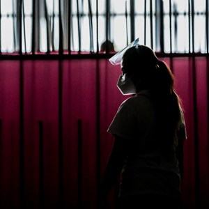 这是12月16日在菲律宾帕赛市一家商场的疫苗接种点拍摄的佩戴口罩和防护面罩的市民。