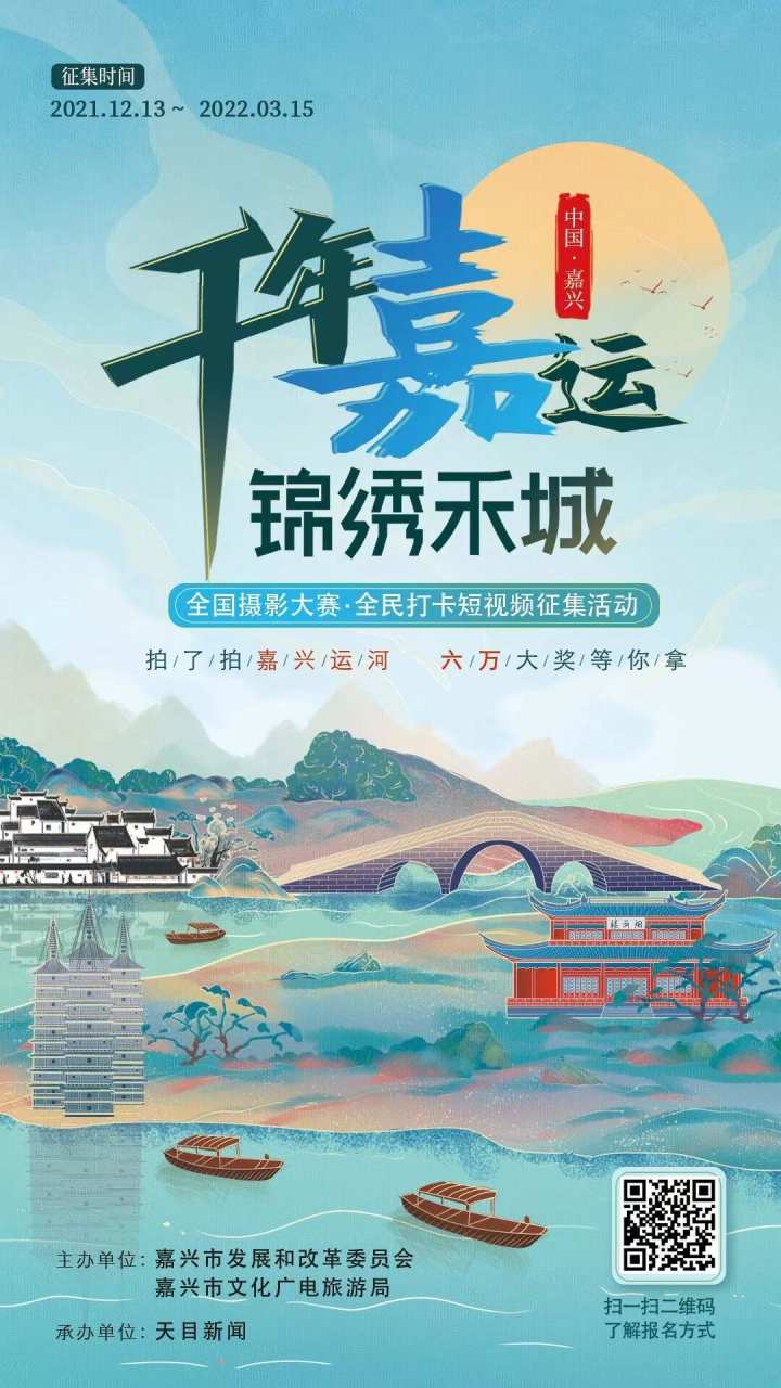 为记录并展现这一抹别样“嘉”景,讲好大运河文化带上的“嘉兴故事”,即日起(12月13日),由嘉兴市发展和改革委员会、嘉兴市文化广电旅游局主办,天目新闻承办的“千年嘉运·锦绣禾城”全国摄影大赛和全民打卡短视频征集活动正式启动。活动旨在激发创作者们主动传播以嘉兴大运河文化为载体的文化遗产、美好人物、民俗风情、美食美景、经济发展等内容,用镜头聚焦运河沿岸人文之美,共享大运河文化带美好建设成果。