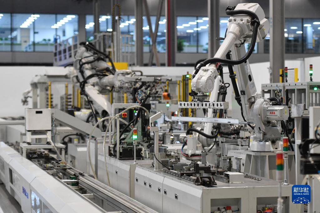 12月17日在位于杭州市临平区的西奥电梯数字工厂内拍摄的自动化智能生产线。