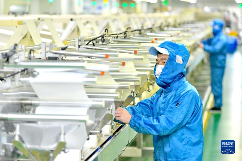 12月16日,在浙江省湖州市长兴经济技术开发区一家护理用品科技公司,工人在赶制消毒湿巾产品。