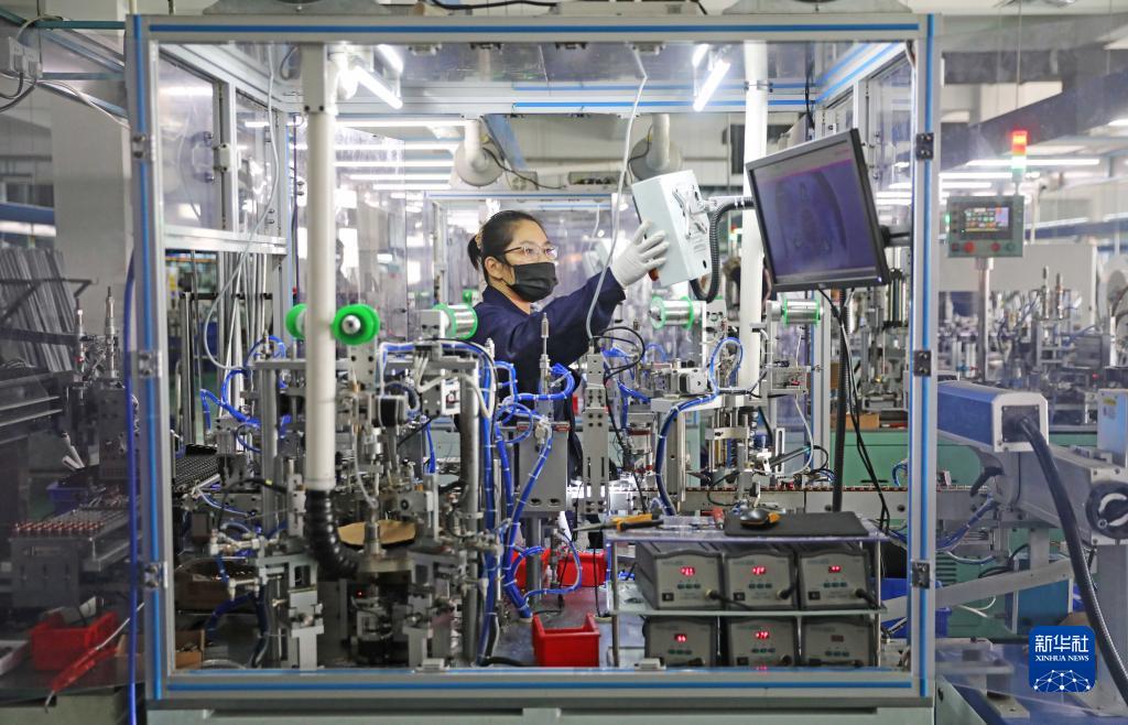 12月17日,在位于浙江省舟山市定海区的一家电机电器生产公司,工人在自动生产线上作业。
