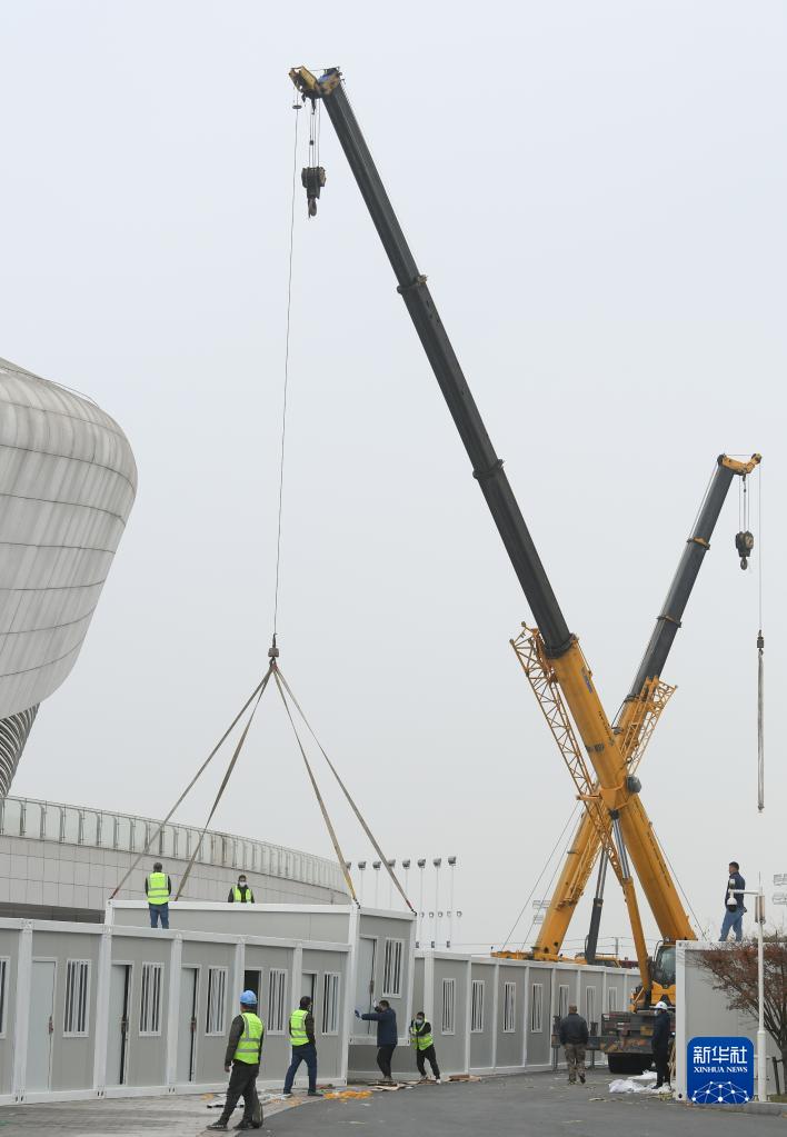 12月14日,工作人员在全力建设绍兴市上虞区体育中心临时隔离医学观察点。