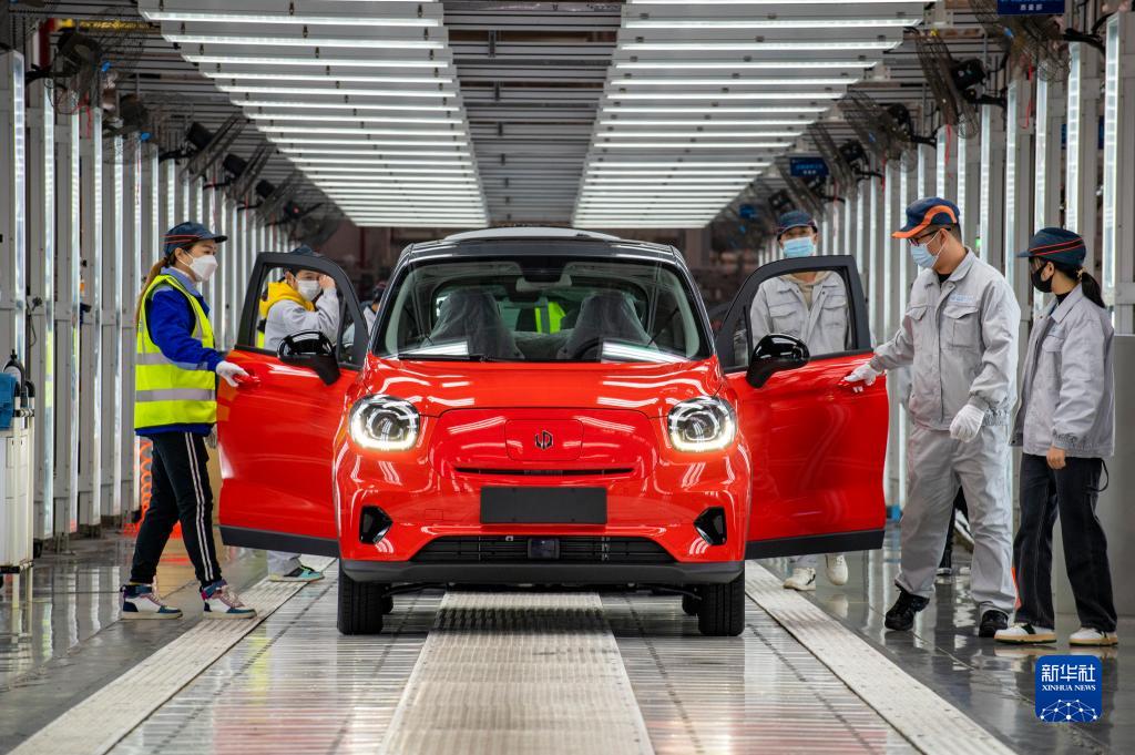 12月17日,在浙江省金华市新能源汽车小镇一家汽车有限公司的总装车间内,员工在有序进行汽车报交下线。