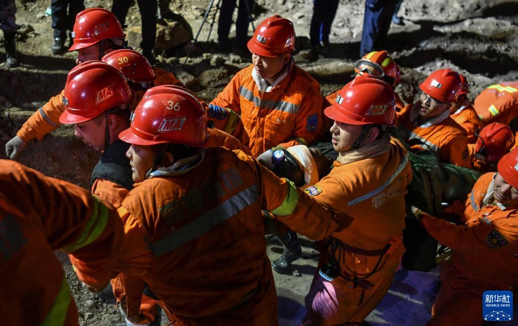 12月17日在孝义市西辛庄镇杜西沟村拍摄的最后一名升井的被困人员。