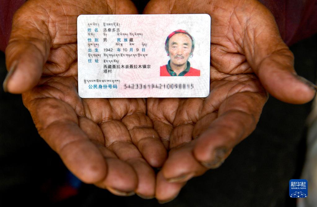 这是洛桑多吉老人的身份证(4月24日摄)。
