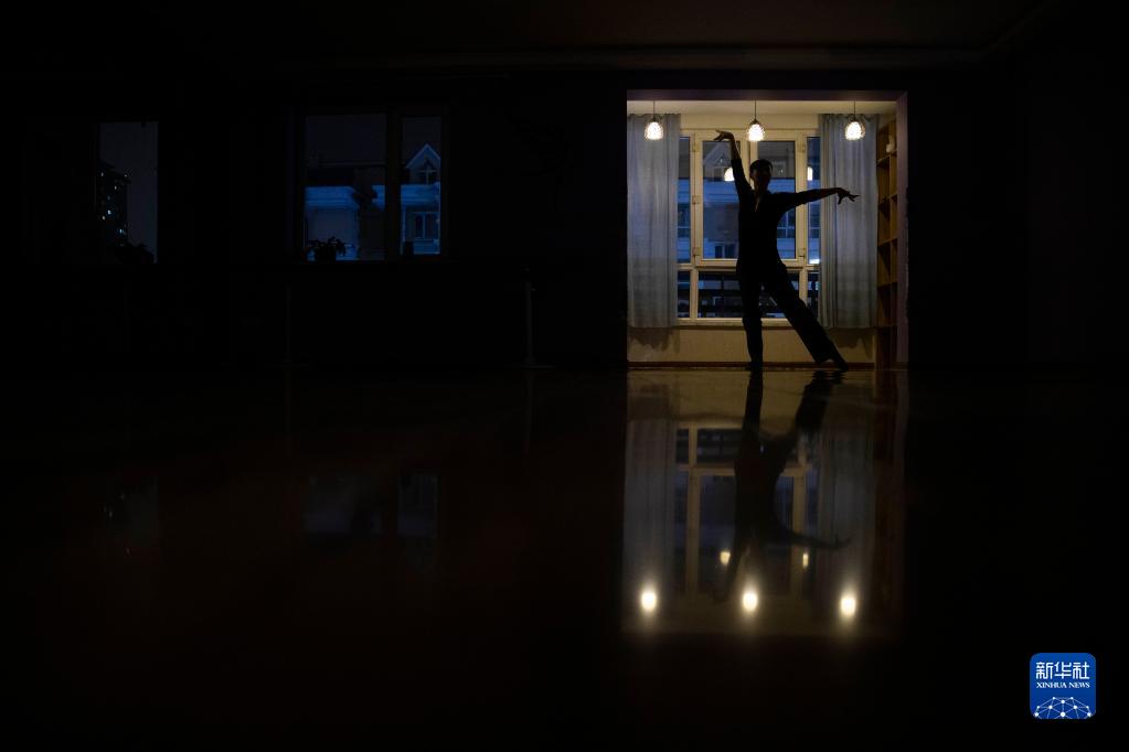 12月10日,结束志愿服务的关超在自己的舞蹈工作室练习舞蹈。