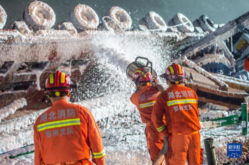 当日15时36分,位于湖北省鄂州市境内的沪渝高速沪渝向转大广高速匝道桥发生桥梁侧翻事件,现场造成3名人员死亡(含2名现场掉落施工人员、1名掉落货车上人员)、4人受伤。新华社发(伍志尊 摄)