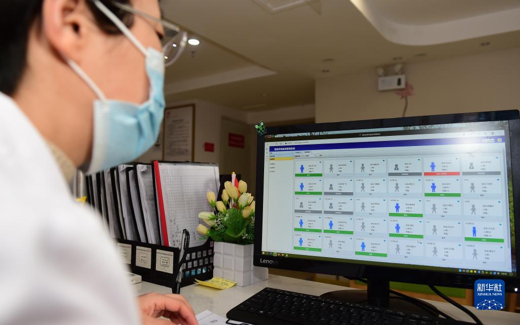 12月18日,在合肥市庐阳区大杨镇清源社区智慧养老服务中心,工作人员查看智能床垫监测管理系统,了解老人睡眠情况。