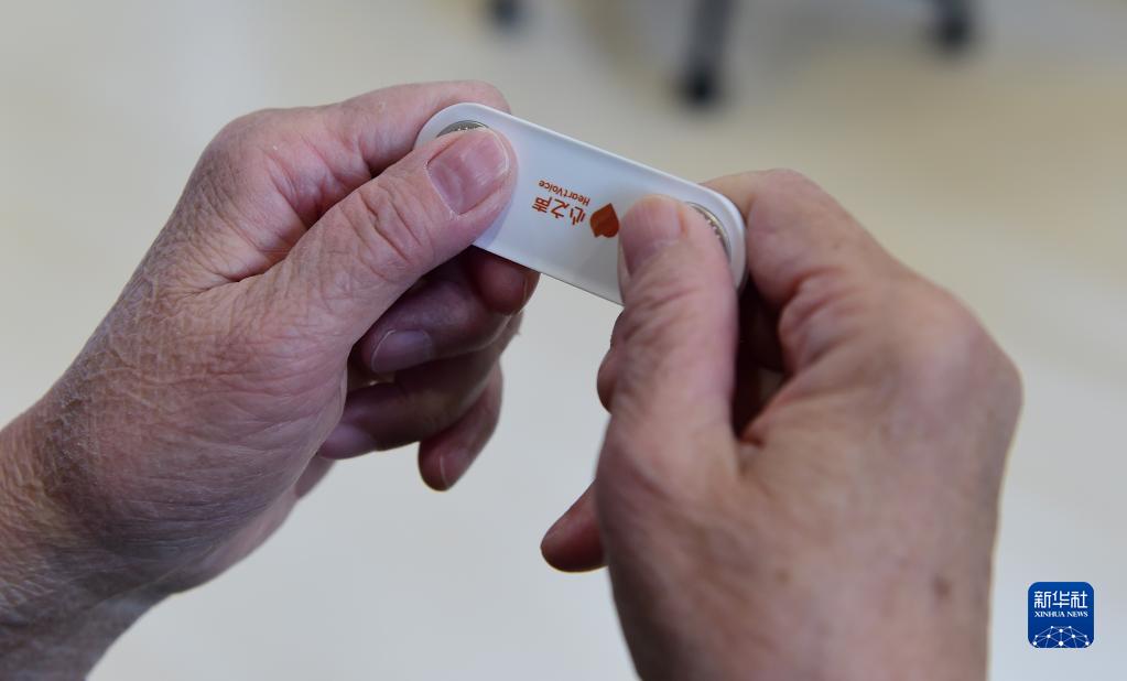12月18日,在合肥市庐阳区大杨镇清源社区智慧养老服务中心,老人使用智能血压监测仪,该仪器可将测量数值上传至老人健康档案中。