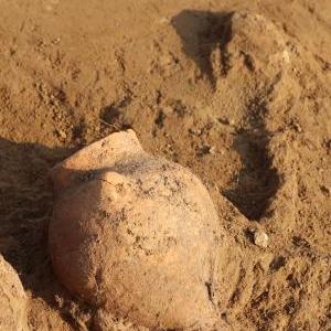 这是在位于河南省新郑市的裴李岗遗址出土的陶壶(资料照片)。