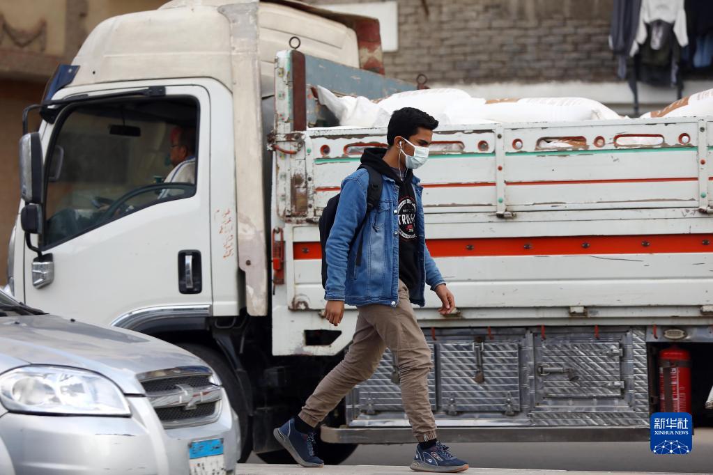 12月18日,行人在埃及开罗佩戴口罩出行。