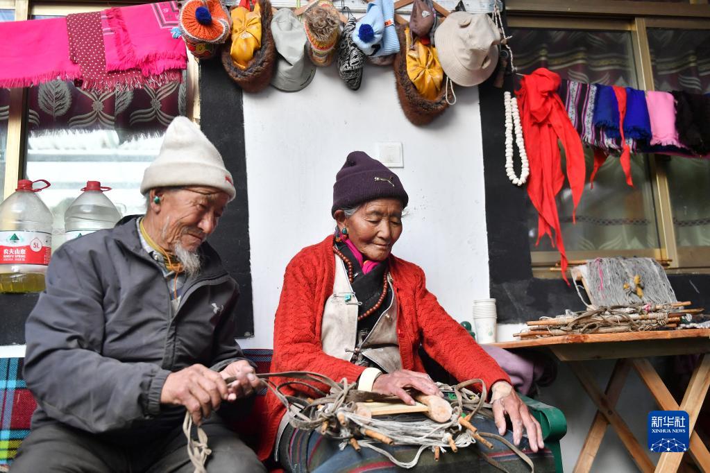 这是次仁顿珠老人(左)和老伴在家里干活(5月13日摄)。新华社记者 孙瑞博 摄