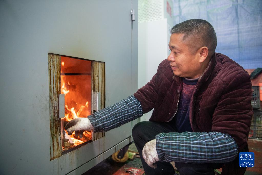 12月18日,在位于重庆市渝北区王家街道的“无烟熏制腊肉便民服务点”,工作人员在操作“熏肉神器”。
